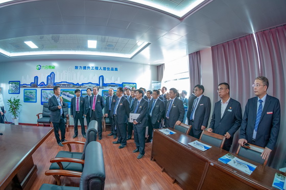 中铁智能化高端装备产业园是中铁工程装备集团有限公司新建工业项目,集智能制造、绿色制造、工业旅游为一体,致力于打造国内领先的隧道掘进高端装备示范园区。在设备与模型展区,党员领导干部在园区有关负责同志的引导与讲解下,先后参观了常规土压盾构机、"春风号"盾构机、"彩云号"盾构机等模型,世界最大悬臂掘进机--CTR450悬臂掘进机、三臂凿岩台车、三臂三篮拱架安装台车、智能湿喷台车、双臂高原湿喷台车、混凝土湿喷台车等多种针对恶劣自然环境和复杂地质条件量身打造的企业自主研发产品。现场技术人员就部分典型装备的工作状态进行了简易操作与演示,大家纷纷驻足观看,并不时展开热烈的讨论。坚定推进产业转型升级,加强自主创新,发展高端制造、智能制造,一系列高端装备排列有序,让全体党员领导干部真切感受到了企业如何依靠自身努力,将大国重器掌握在自己手里。随后,大家还来到致力提升工程人居住品质的六合易家装配式集成房屋展示中心,考察了由单元模块组合形成的会议室、办公室、职工宿舍等工程项目办公及生活用房,详细了解了装配式房屋的设计生产理念与优势。