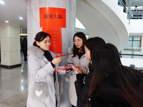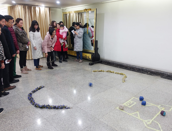 中国元宵节传统游艺活动之一的猜灯谜,作为历年参与人数最多的活动项目,在公司2楼楼群热烈进行。700多条色彩斑斓的谜面整齐悬挂,从猜字谜到猜成语,从猜地名到猜日常用语,依旧吸引了不少职工驻足参与。3楼的"幸运溜溜球"则是考验参与者筷子夹物的技术和稳中取胜的心理素质,要求在30秒内夹出5个泡在水中的弹珠,既有挑战,又有乐趣,参与职工也是排起了长队。还有弹无虚发、心有灵犀、斗转乾坤、泡泡糖、快乐呼啦圈、双龙戏珠、情投意合、隔空打锣、扔飞镖、掌上明珠、植树造林、最强大脑、你画我猜、漫画成语、贴鼻子、踢出未来、一鼓作气、稳重求胜、"666"摇摇乐、一掷乾坤......,无论走到哪个活动项目现场,都会被不绝于耳的加油、喝彩、欢呼的声音所吸引,令人摩拳擦掌,跃跃欲试。