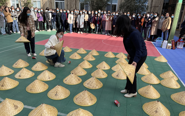活动现场乐趣满满、笑声连连。趣味性最强的项目要数"Lucky连连看",参加活动的女职工井然有序、依次列队,球场下阳光照耀着的"8*8"斗笠方队的神秘面纱正在等着大家一个个揭晓,随着教官一声令下,各组队员跃跃欲试、依次出战,按照活动规则,3个斗笠下物品一致可直接拿走,数量居多者获胜,喜获幸运三连的女职工们兴高采烈,一时失手地也在期待着下一次惊喜的不期而至......在轻松有趣的活动游戏中既缓解了女职工的工作压力,同时也激发了她们立足本职、敬业奉献的工作热情。