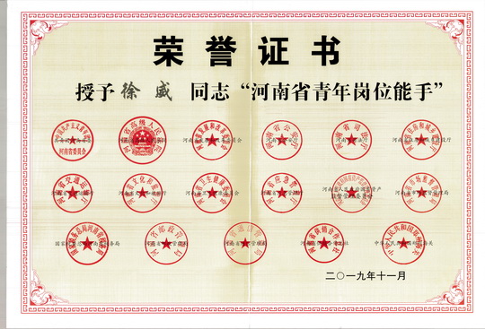 近日,由共青团河南省委、河南省高级人民法院、河南省发展和改革委员会、河南省公安厅等17家单位经综合考察,逐级推报、择优评选、社会公示,共同评选的"2017-2018年度河南省青年岗位能手"表彰文件印发,公司工程院青年技术员工徐威同志获得了本项荣誉。