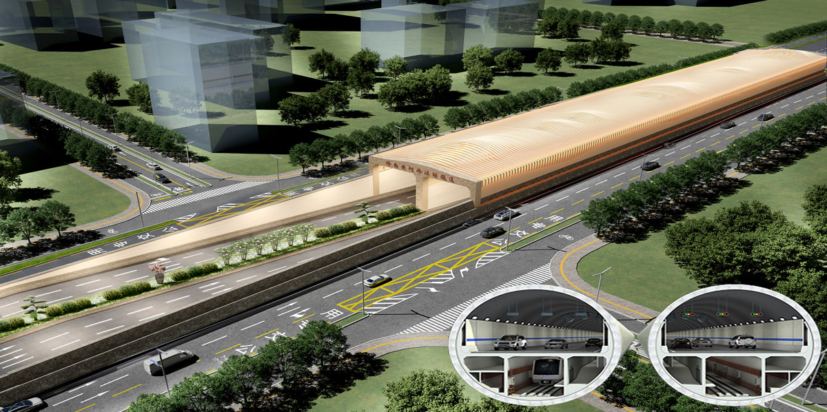 佛山市主干路,道路红线宽50m全长5.88㎞,设置下沉式隧道1座长650m。