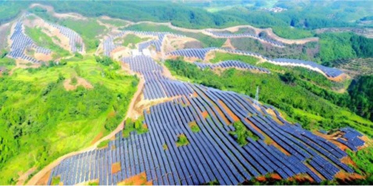 国电投云南东川116MW光伏EPC总承包项目装机规模116.116MW,其中固定支架约78.078MW,柔性支架约38.038MW。成功解决复杂山地光伏电站方阵布置等技术难题。