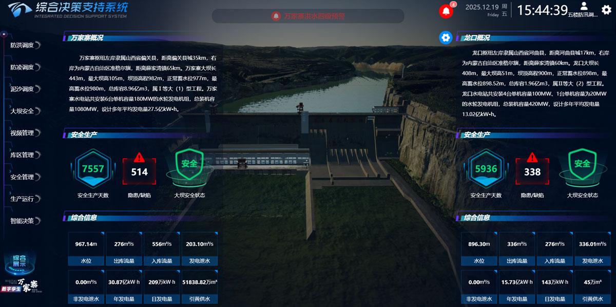 响应水利部开展数字孪生流域建设先行先试工作的号召,以万龙枢纽为核心构建数字孪生体系,搭建数据底板与孪生平台,建设太原、枢纽双运管中心。耦合水沙电核心要素,集成防洪调度、大坝安全等智能应用,实现"四预"功能三维可视化管控,显著提升枢纽防洪调度能力与工程本质安全水平。创新构建"1平台+2中心+3要素+4应用"体系,打造流域级数字孪生示范标杆,形成"四预保安全、三化促管理"的智慧化运行范式。